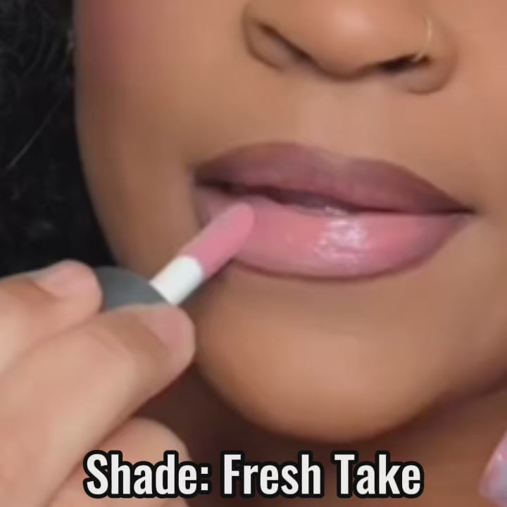 Brighten your look with 'FRESH TAKE', a cool-toned pink lip oil that delivers a clean, glassy shine with a soft touch of color. This lightweight, hydrating lip oil melts into the lips for a smooth, healthy, just-pinched effect. The ultimate glossy lip oil for a fresh, everyday pink that feels comfortable and effortless.